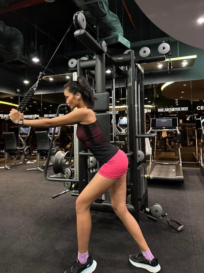Hình thể gợi cảm làm bao người say đắm với vòng ba chạm ngưỡng 100cm, cô đến phòng tập mỗi ngày để luôn giữ được vóc dáng.
