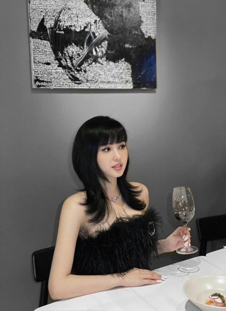 Theo dõi trang cá nhân của con dâu hào môn có thể thấy, cô khá kín tiếng chuyện đời tư gia đình nhưng lại thoải mái chia sẻ các hoạt động vui chơi, "lên đồ" cùng hội chị em. Người đẹp phủ sóng tủ đồ với tông đen cơ bản nhưng lại không hề nhàm chán, u uất mà rất high-fashion.