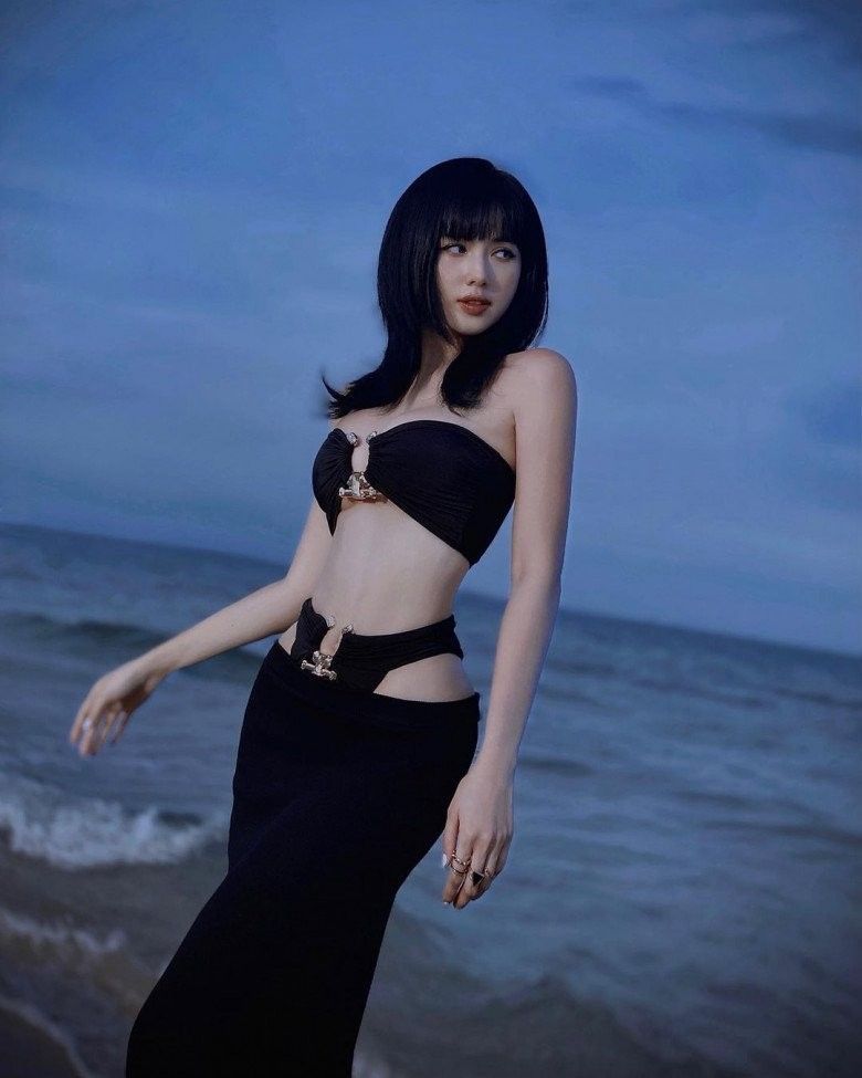 Cô nàng ăn diện khá đơn giản nhưng lại rất sành điệu khi đồng bộ một màu đen huyền bí. Thiết kế 2 dây gợi cảm tôn lên trọn vẹn thềm ngực mãn nhãn, đầy đặn.