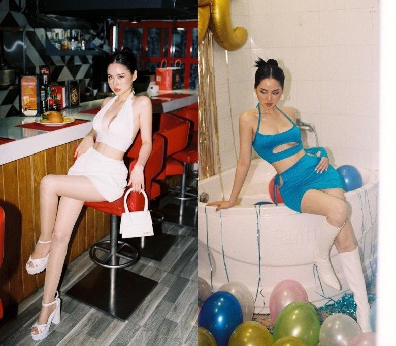 Đã là người "có tuổi" và là mẹ 2 con nhưng không có nghĩa, Tâm Tít phải chia tay những item tuổi teen trẻ trung. Các thiết kế corset đẩy ngực, khoe vai trần gợi cảm là item không thể thiếu của quý cô.