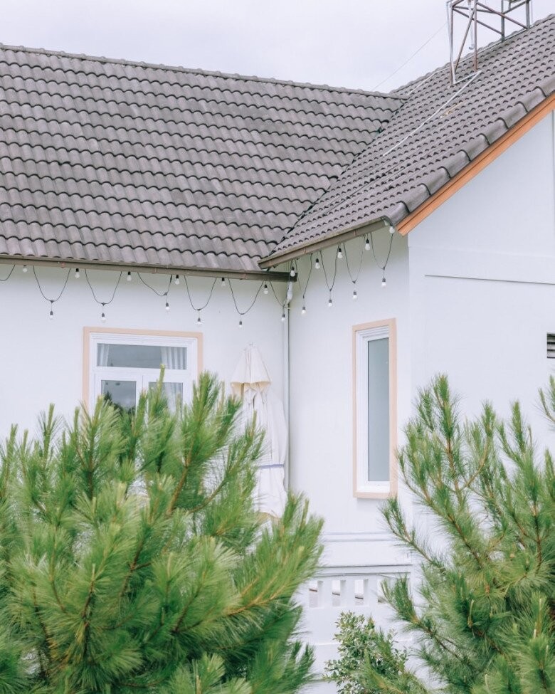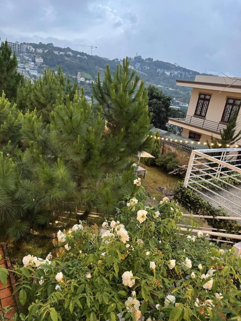 Đây là chốn nghỉ dưỡng lý tưởng cho Quỳnh Châu sau những ngày tất bật chạy show ở thị thành. Biệt thự được sơn trắng với phần mái ngói xám trầm, bao quanh là thông xanh và giàn đèn dây giăng nhẹ nhàng, gợi cảm giác mộng mơ đặc trưng của Đà Lạt.