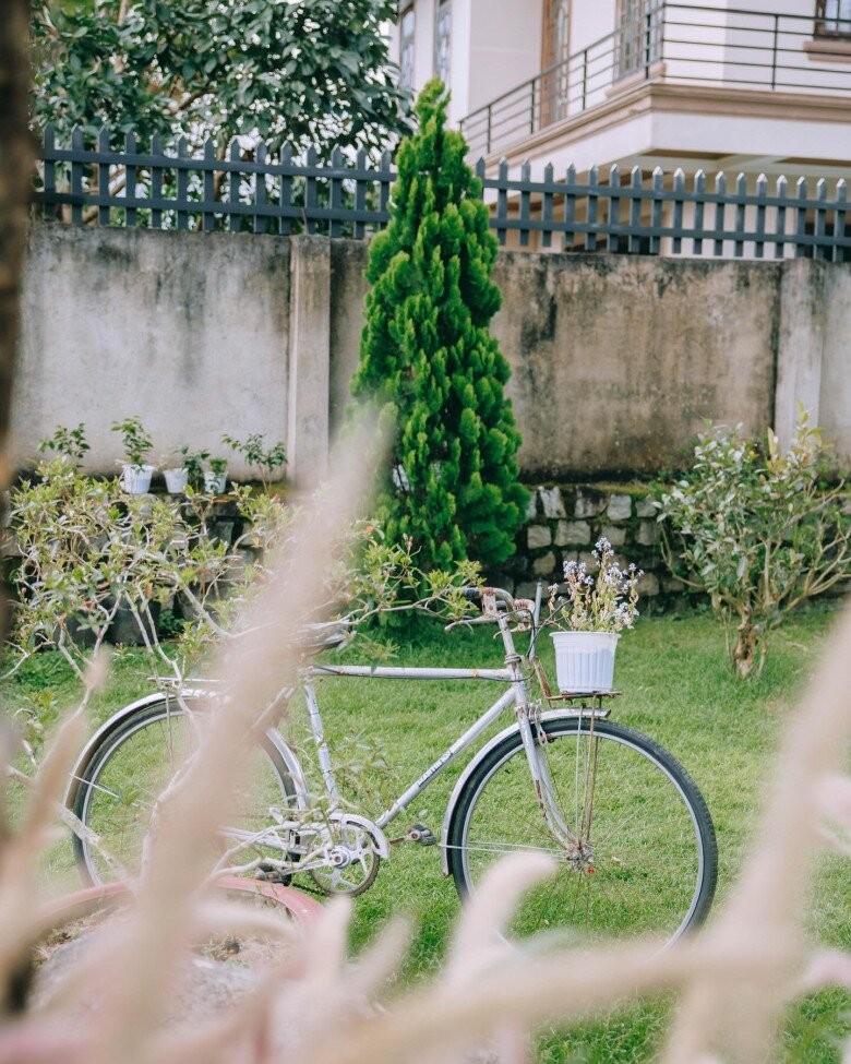 Những chi tiết rất đáng yêu như chiếc xe đạp bạc màu được tái sử dụng thành điểm nhấn độc đáo cho khu vườn, với giỏ hoa nhỏ xinh gắn phía trước.