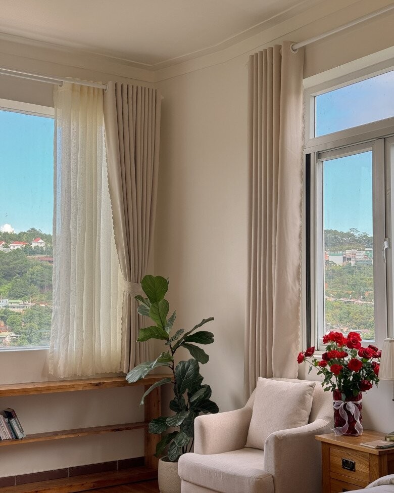 Góc ngắm cảnh hay ngồi đọc sách cạnh cửa sổ. Từ đây phóng tầm mắt xuống và cảm nhận thiên nhiên thật hài hòa, vừa ấm cúng vừa thư giãn.