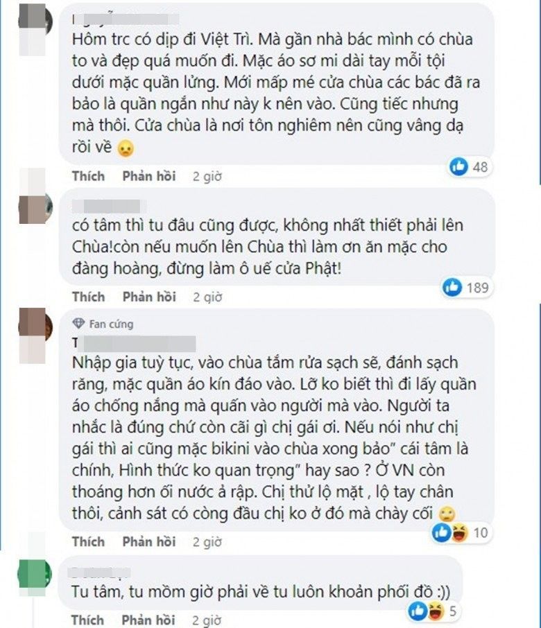 Số khác lại phản ứng gay gắt với lí lẽ "tự do tín ngưỡng, hình thức không quan trọng" của cô nàng. Có người cho rằng, khi đi lễ không chỉ tu tâm, tu lời ăn tiếng nói mà còn cần chú ý luôn khoản phối đồ.