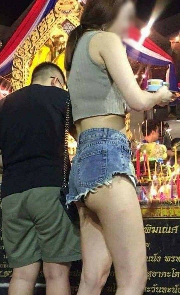 Một cô nàng từng mặc đồ hở tới nửa phần mông khi vào chùa. Dù trường hợp xảy ra ở Thái Lan nhưng cũng từng lọt "tầm ngắm" của cư dân mạng Việt Nam và nhận về nhiều "gạch đá".