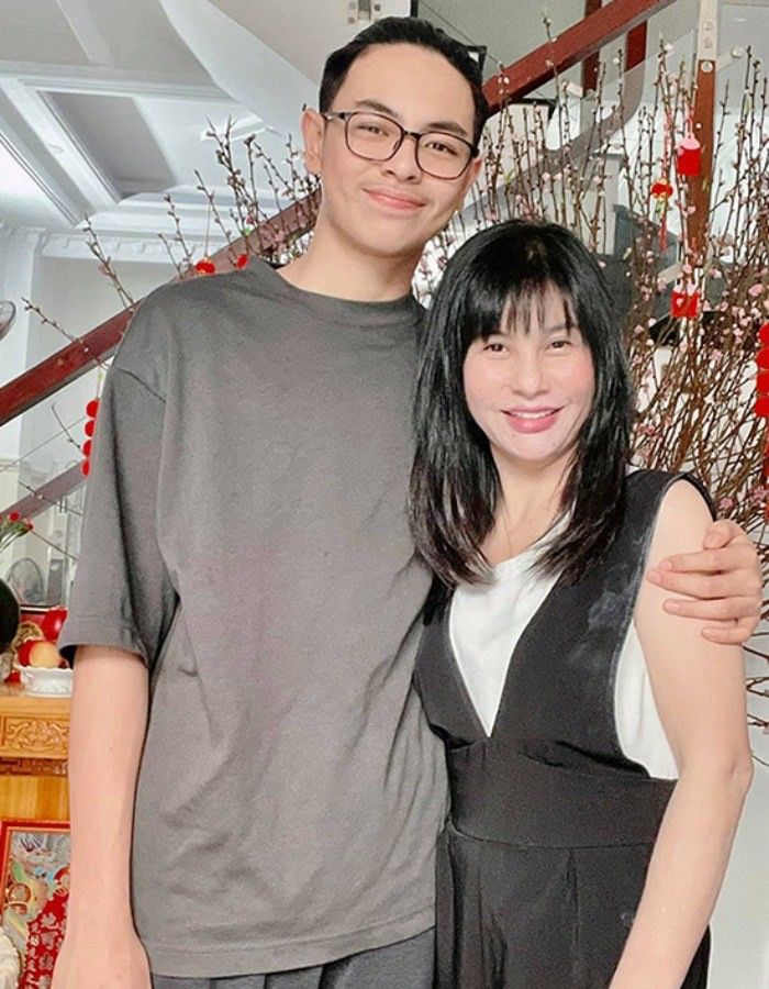 Cát Phượng và con trai Bom - con chung với chồng cũ là diễn viên Thái Hòa.