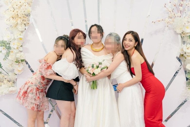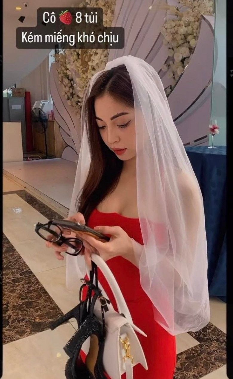 Trong tiệc hỷ của cô bạn thân, người đẹp sinh năm 1999 nhanh chóng nhận được sự chú ý với màn chiếm spotlight sự kiện với thiết kế đầm đỏ rực rỡ.