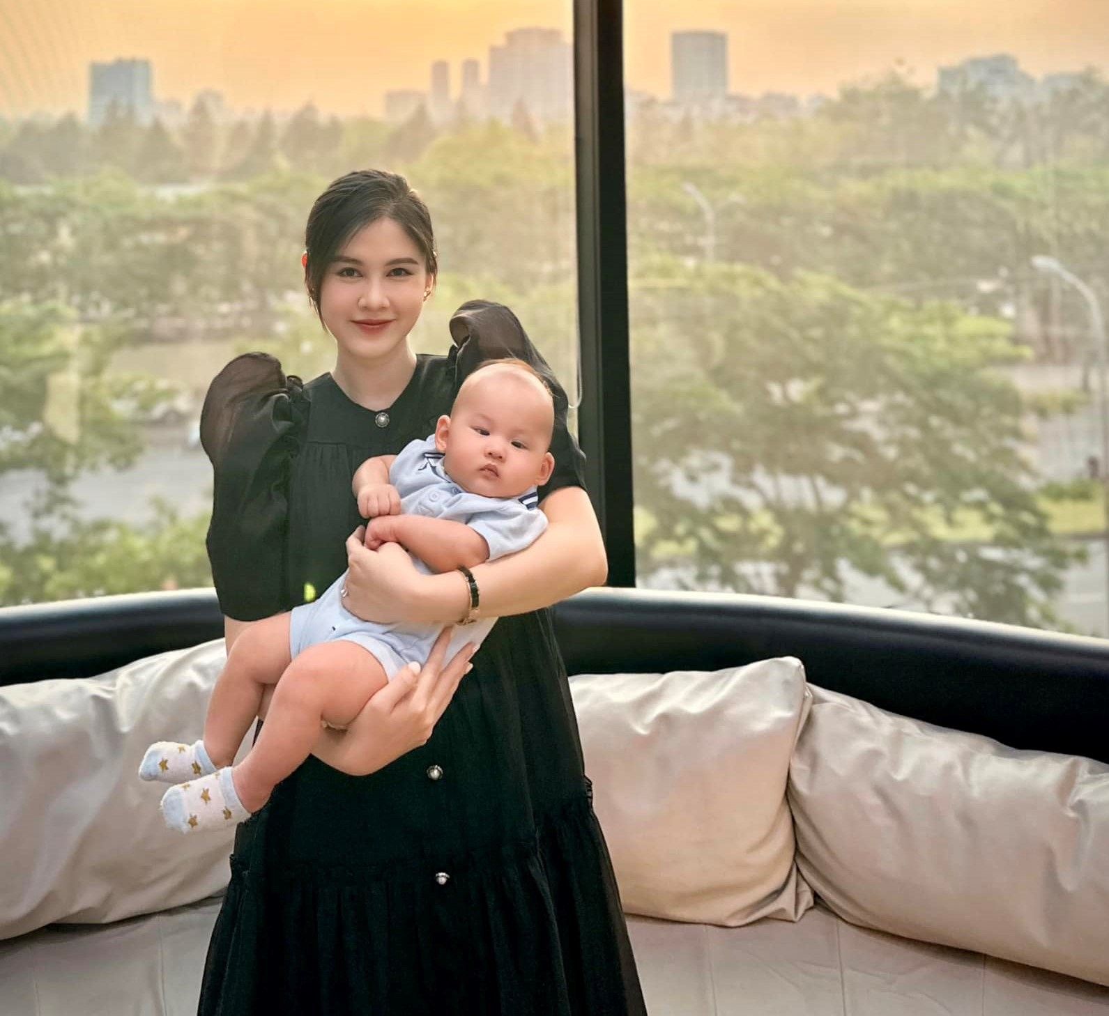 Sau sinh, quý cô có mũm mĩm nhưng lại là sự đầy đặn dễ thương. Với làn da trắng hồng, gương mặt ngũ quan hài hòa nên trông mẹ bỉm ở nhiều tấm hình dễ thương như búp bê.