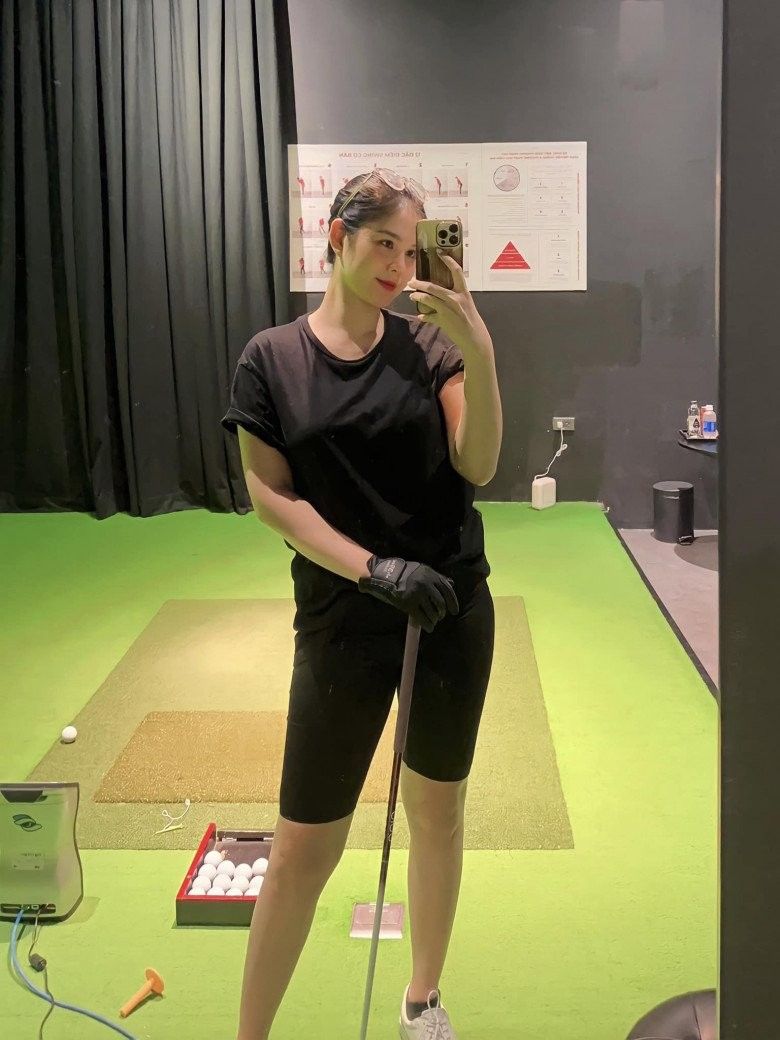 Sau 6 tháng, cô trở lại tập kháng lực với môn golf - bộ môn đã se duyên cho cô và ông xã.
