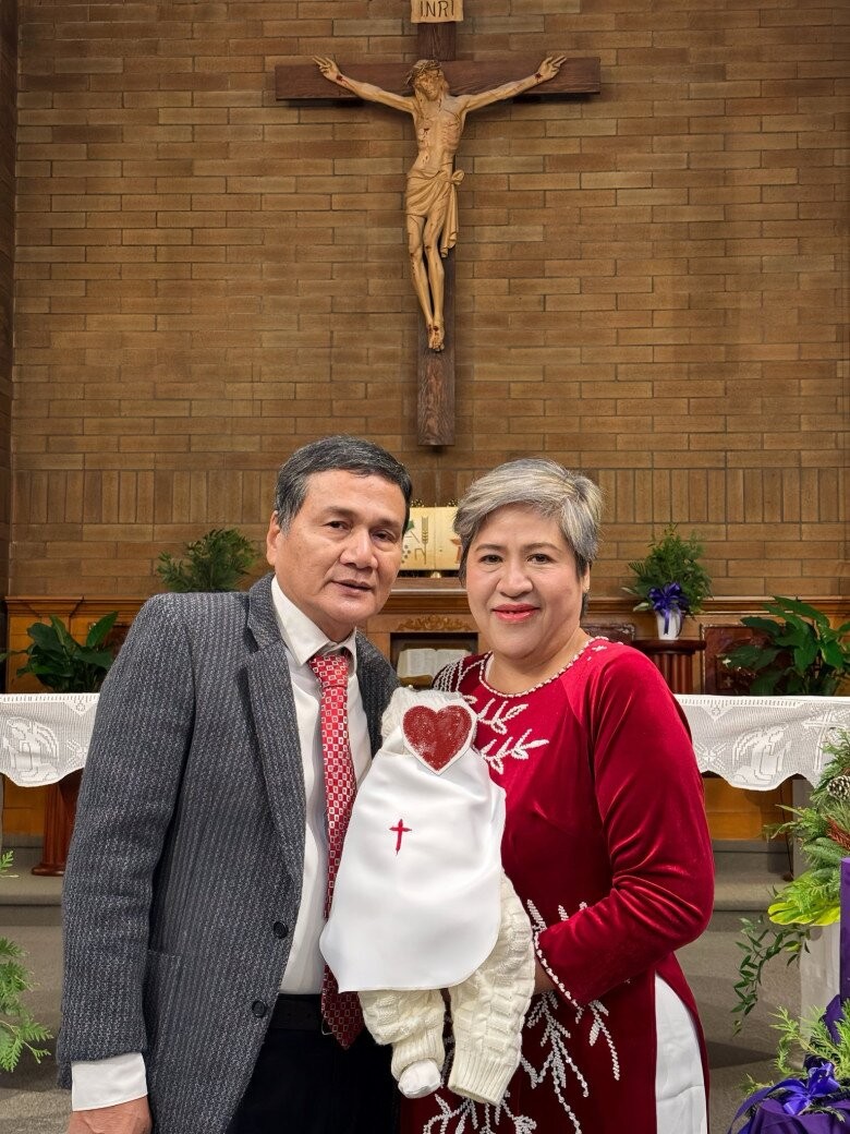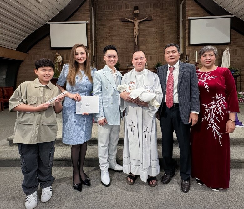 Bố mẹ và con trai đầu lòng của Diễm Hương có mặt tại lễ rửa tội.
