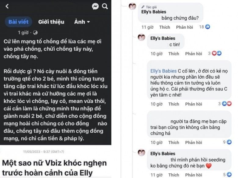 Đáng chú ý, giữa lúc câu chuyện ly hôn của hot mom Elly Trần khiến người xem thương cảm, mạng xã hội xuất hiện bài viết chỉ trích Elly Trần chỉ đang "khóc diễn" để dẫn dắt dư luận tấn công chồng Tây. Cụ thể người này viết: "Cứ lên mạng tố chồng để lùa các mẹ ơi vào phá chồng, chửi chồng Tây này, chồng Tây nọ. Rồi được gì? ** cày nuôi và đóng tiền trường quốc tế cho 2 bé, mình cũng tung tăng cặp trai khác, từ lúc đầu khóc lóc xỉu vì trai khác mà cứ hướng các mẹ ơi là khóc lóc vì chồng...".