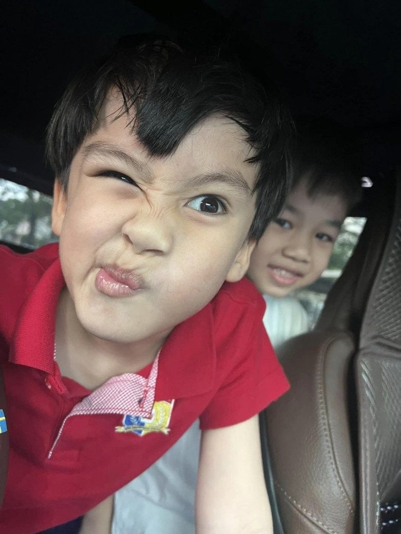 Louis có vẻ giỏi Toán, giỏi về số giống như mẹ. Còn một điểm nữa giống mẹ, là không có xíu tố chất về âm nhạc gì cả! (cười).