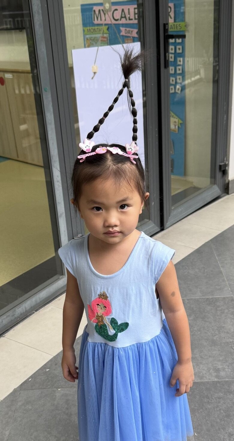 "Đón con mà choáng với visual tóc của con luôn, các cô sáng tạo thật sự" - bà mẹ viết.