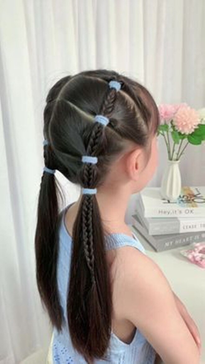 Kiểu tóc này thích hợp cho bé gái đi học, vừa gọn gàng, vừa mát mẻ.