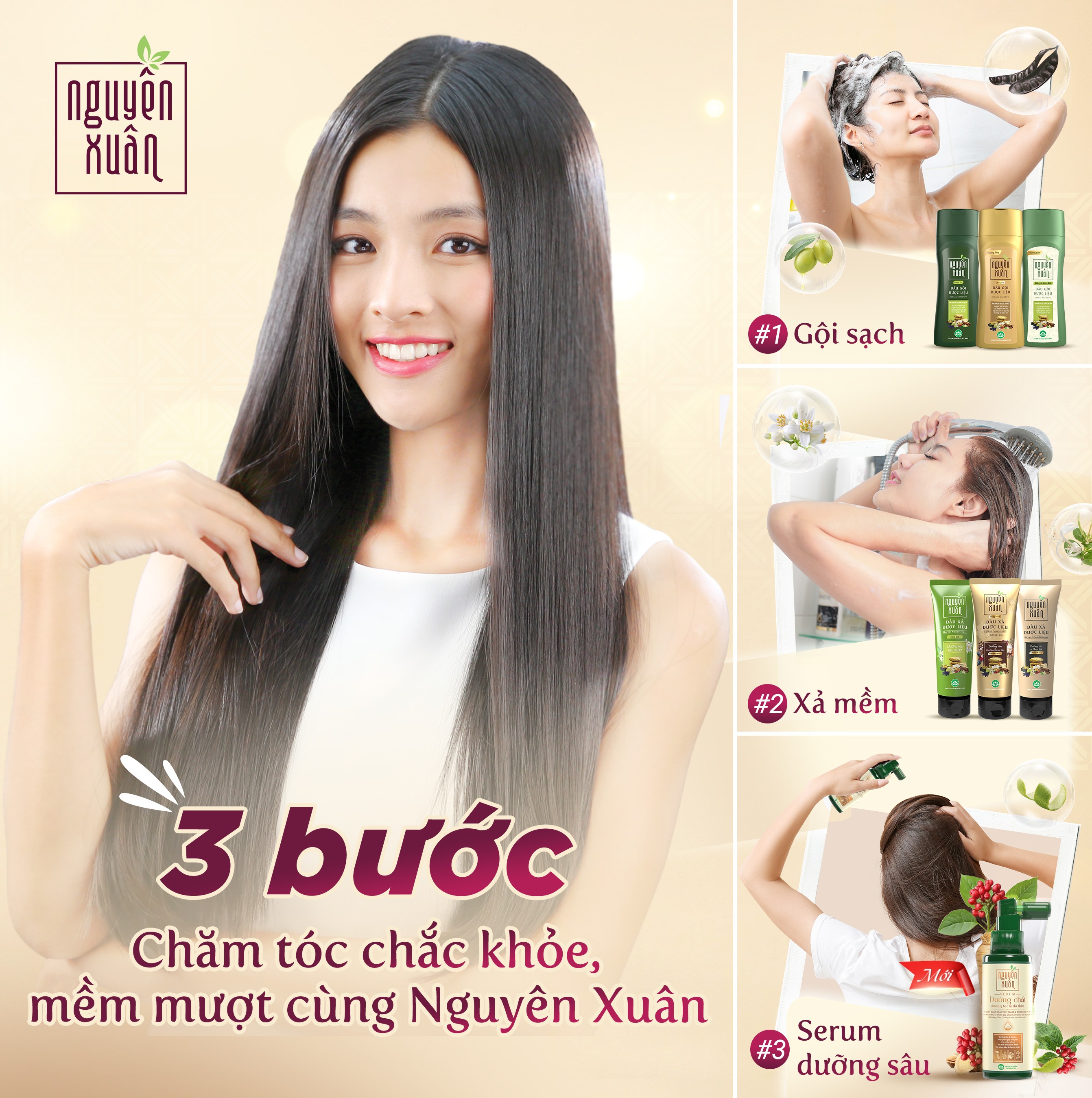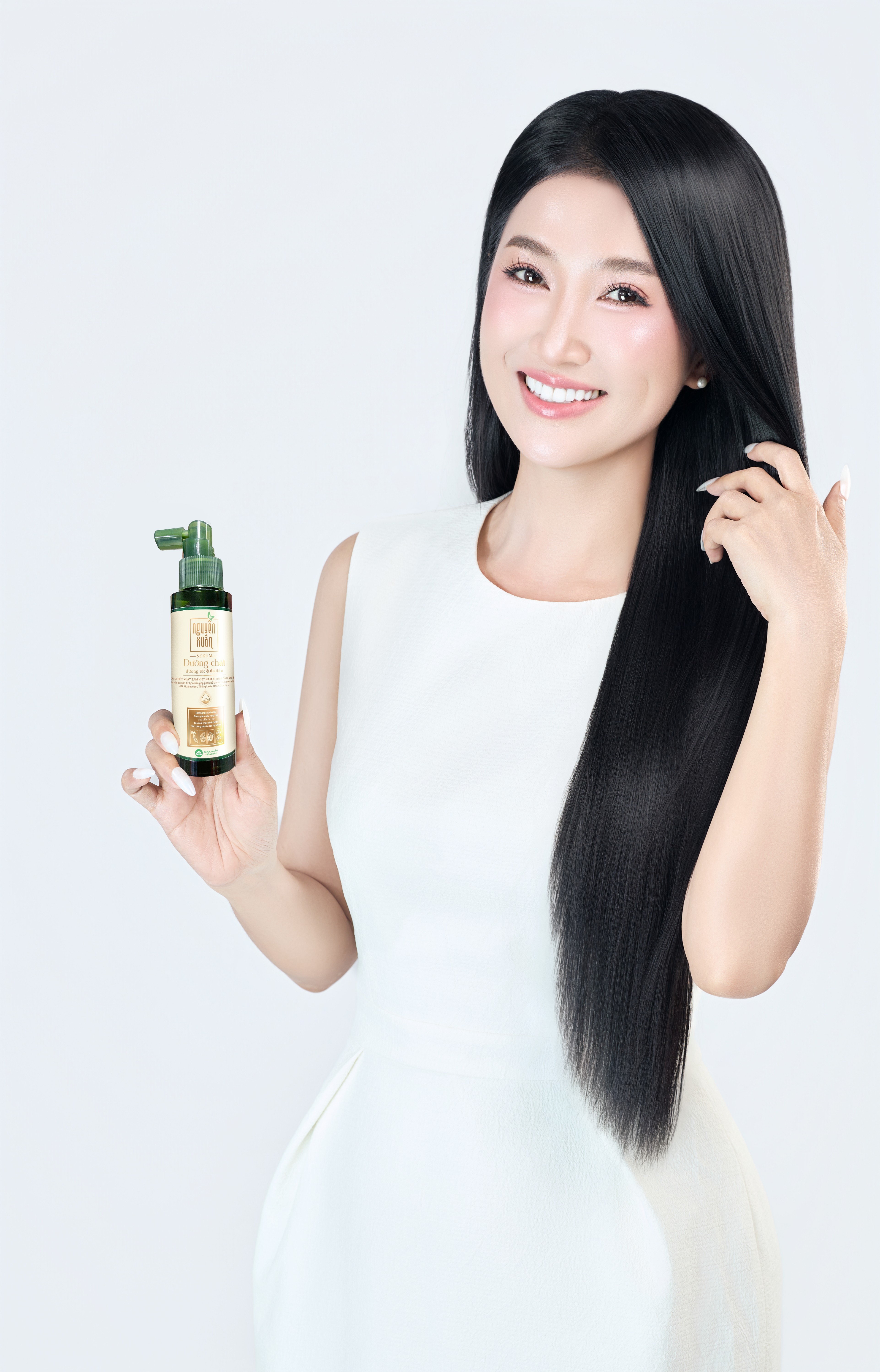 Serum dưỡng chất dưỡng tóc & da đầu Nguyên Xuân chính là người bạn đồng hành trong quá trình chăm sóc mái tóc: “Sau thời gian sử dụng, tôi cảm nhận tóc chắc khỏe hơn, da đầu cũng thông thoáng, dễ chịu. Nhờ vậy, mái tóc dài vẫn luôn là niềm tự hào của tôi, cả trên phim trường lẫn ngoài đời.”