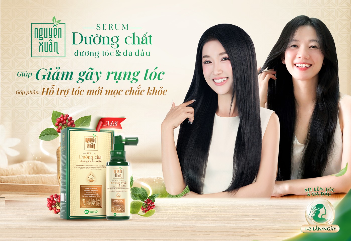 Diễn viên Quỳnh Lam và Oanh Kiều lựa chọn Serum Dưỡng chất dưỡng tóc và da đầu Nguyên Xuân trong chu trình chăm sóc tóc.