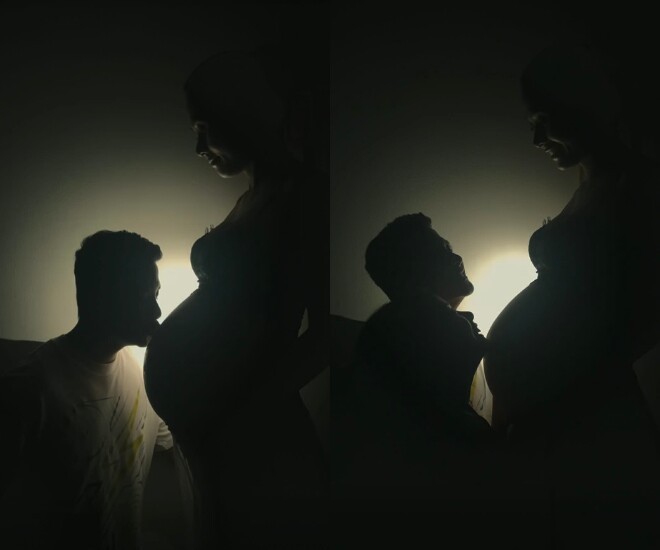 Nữ diễn viên khoe khoảnh khắc hạnh phúc khi được chồng và con gái hôn bụng bầu.