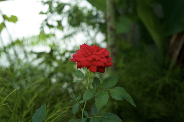 “Nếu định đăng đối, có lẽ bông này mình sẽ cho ở chính giữa” - nữ ca sĩ lựa chọn Thảo đường Hoàng đế làm điểm nhấn cho bố cục cân đối, kết hợp cùng hoa hồng mềm mại.