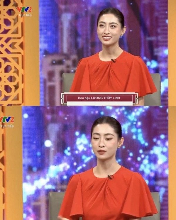 Lương Thuỳ Linh ghi điểm với phong cách tinh tế, trang nhã khi "lên sóng" thế nhưng cô lại bị soi làn da hơi kém sắc. Có vẻ nàng Hậu có lịch trình hoạt động khá dày đặc, thời gian ghi hình lại vào buổi tối muộn nên làn da của cô trông có phần thiếu sức sống.