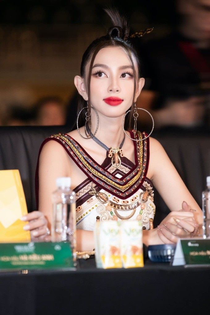 Miss Grand International 2021 Nguyễn Thúc Thuỳ Tiên cũng có màn xuất hiện ấn tượng tại chương trình thực tế 2 Ngày 1 Đêm. So với Mai Phương Thuý, Thuỳ Tiên thậm chí còn mộc mạc hơn khi cô hầu như không trang điểm, chỉ thoa son cho gương mặt thêm rạng rỡ.