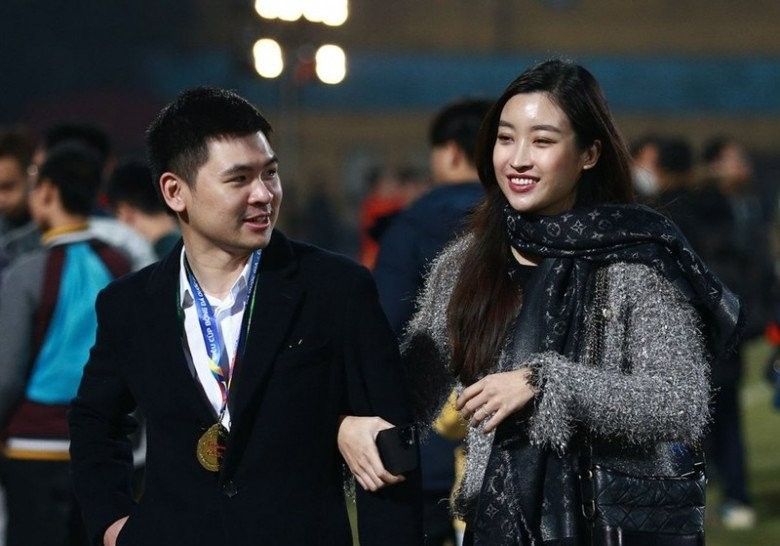 Trước đây, trong quá trình hẹn hò với chồng chủ tịch Đỗ Vinh Quang, Đỗ Mỹ Linh cũng có thái độ im lặng trước mọi lời đồn thổi. Mãi đến khi thông báo kết hôn, nàng Hậu mới công khai danh tính chú rể chính xác là con trai út Bầu Hiển.