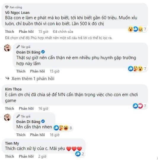 Phía dưới phần bình luận, rất nhiều phụ huynh lên tiếng thừa nhận đã trường hợp tương tự đã xảy đến với con em của mình. Tuy nhiên số tiền mới dừng lại ở vài triệu hoặc vài chục triệu đồng chứ cả trăm triệu đồng như gia đình Đoàn Di Băng quả thực vô cùng xót lòng.