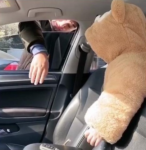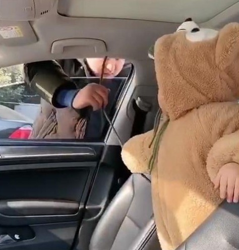 Trong quá trình đó, cậu con trai đứng trong xe một mình vẫn quan sát mọi diễn biến đang diễn ra bên ngoài. Vì còn quá nhỏ nên hành động của bố dường như không khiến bé hiểu rõ về tình huống, mà chỉ mang đến sự tò mò. Khi thấy bố loay hoay mãi mà không thành công, cậu bé bỗng dưng quyết định "ra tay" giúp đỡ.