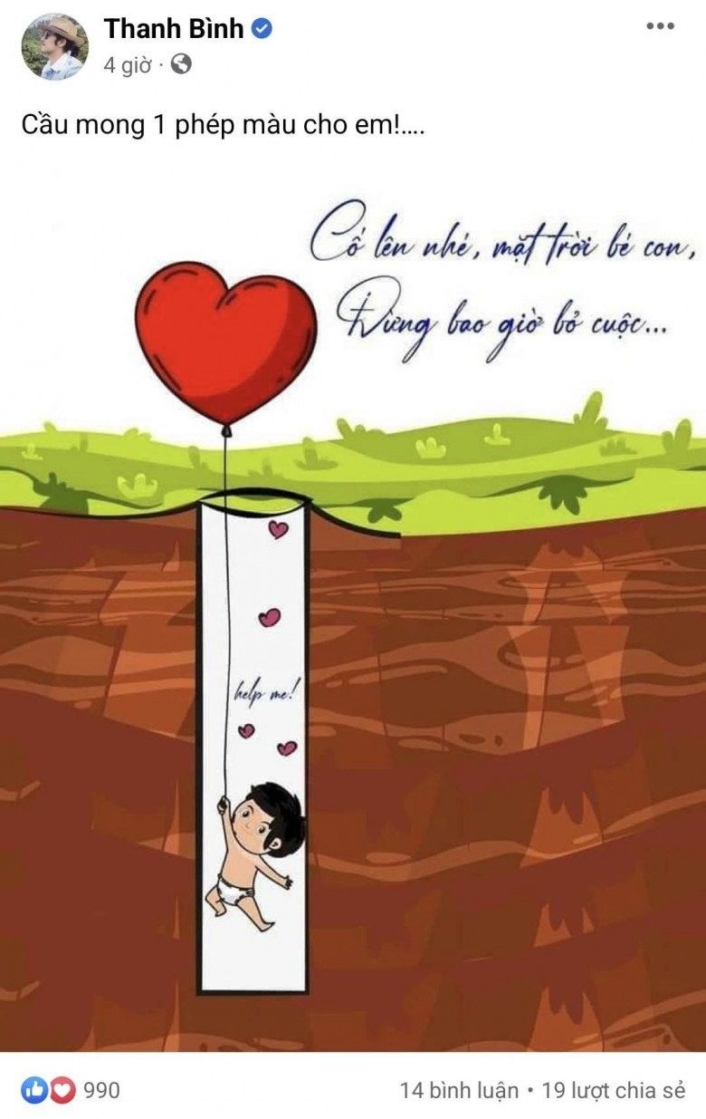 Bức ảnh mang thông điệp phép màu sẽ đến với cậu bé Hạo Nam được nhiều anh chị em nghệ sĩ chia sẻ. (Nguồn ảnh: Chụp màn hình Facebook nhân vật)