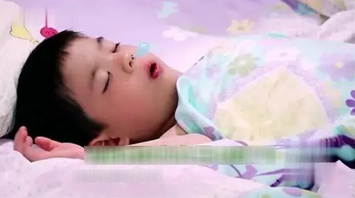Cậu nhóc có thói quen há miệng khi ngủ.