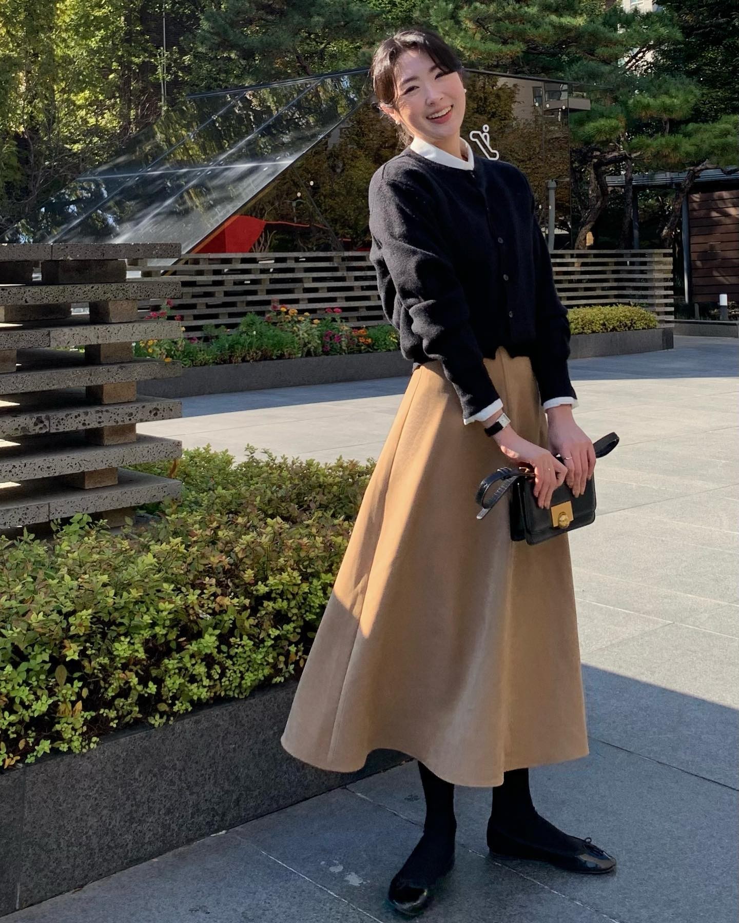 Trong tủ đồ của nhiều chị em, chân váy đen gần như là món đồ mặc định. Dễ phối, không kén dáng, phù hợp nhiều hoàn cảnh/ Tuy nhiên, việc quá trung thành với chân váy đen đôi khi lại khiến phong cách trở nên an toàn quá mức, thiếu điểm nhấn và dễ tạo cảm giác đứng tuổi.
