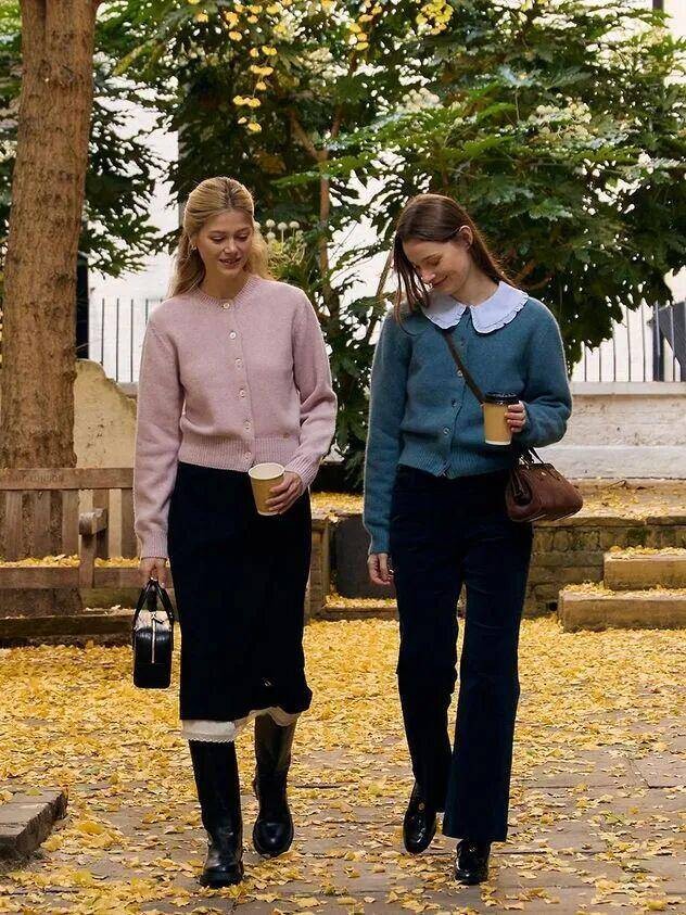 Đặc biệt, không thể bỏ qua những chiếc cardigan mỏng mang phong cách “bà ngoại” với gam màu dịu nhẹ như vàng nhạt, xanh bạc hà hay mơ kem, điểm xuyết hàng cúc nhựa mờ hoặc cúc vỏ sò đầy tinh tế.