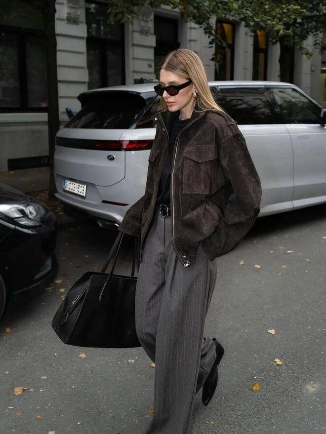 Khác với những phiên bản rộng thùng thình trước đây, áo khoác bomber mùa này được “làm mới” bằng cách chú trọng hơn vào tỷ lệ và chất liệu. Thiết kế gọn gàng, đặc biệt là dáng ngắn, giúp tôn dáng rõ rệt, đồng thời dễ dàng kết hợp cùng váy nữ tính hay quần jeans để tạo nên tổng thể cân bằng giữa mạnh mẽ và tinh tế.
