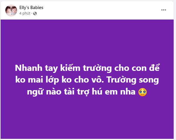Ngay sau bài đăng chồng Tây cắt ứng dụng xem phim, Elly Trần đã thông báo tìm trường mới cho con. Cô viết: "Nhanh tay kiếm trường cho con để không mai lớp không cho vô. Trường song ngữ nào tài trợ hú em nha". Có lẽ bà mẹ 2 con lo lắng, sau khi cắt tài khoản Netflix, chồng Tây sẽ có những động thái mạnh mẽ hơn như cắt trợ cấp học phí. Cộng đồng mạng hoàn toàn thấu hiểu và đồng tình với Elly Trần. "N***** còn cắt, trường học là gì", một cư dân mạng bình luận.