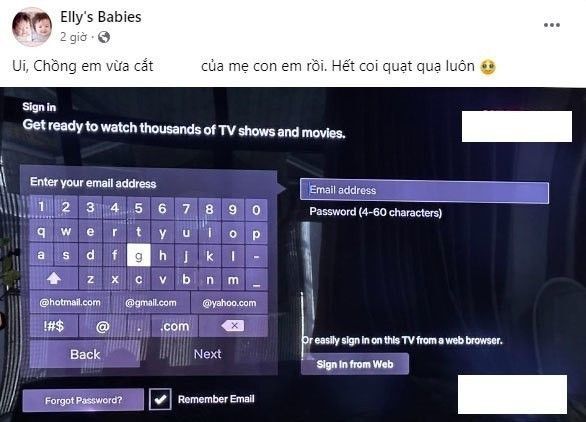 Hotmom thông báo: "Ui, chồng em vừa cắt N****** của mẹ con em rồi. Hết coi hoạt họa luôn". Được biết Elly Trần đang đề cập đến ứng dụng xem truyền hình có trả tiền, với mức phí từ 210.000 - 260.000 đồng/tháng. Số tiền phải đóng hàng tháng không quá nhiều, nhưng cũng chính vì vậy động thái cắt cả phí xem hoạt hình của chồng Elly Trần nhận về phản ứng dữ dội. Nhiều người cho rằng chồng Tây của Elly Trần quá nhỏ nhen, tính toán với cả con ruột mình và đang "giận cá chém thớt".