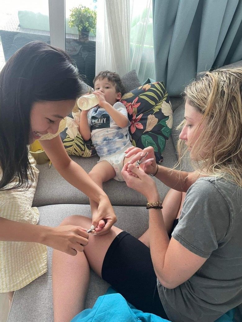 Khi đi công tác xa, MC Hoàng Oanh thường đưa cả con trai và bố mẹ đi cùng để gia đình có thêm thời gian bên nhau. Hoàng Oanh mong con sẽ có thêm trải nghiệm mới mẻ, vui vẻ hòa đồng và hạn chế "mè nheo" sau mỗi chuyến đi.