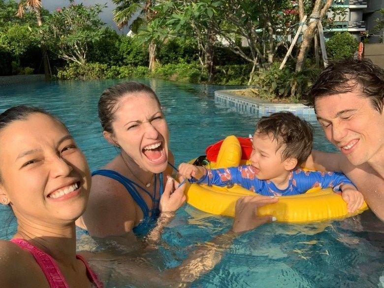Lúc này Hoàng Oanh và doanh nhân người Mỹ chưa ly hôn, cả gia đình chung sống hạnh phúc ở Singapore.