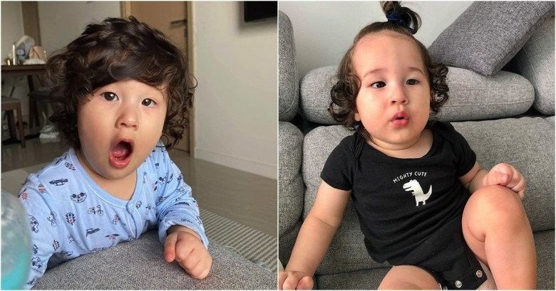 Con trai Hoàng Oanh ngày bé bụ bẫm, đáng yêu, để tóc dài siêu cưng.