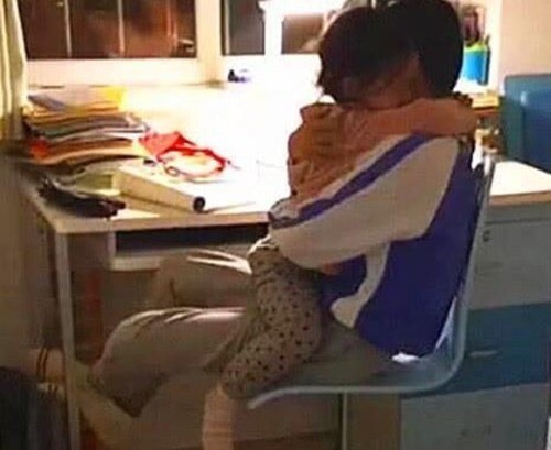 Trong phòng học, anh trai đang chăm chú làm bài, thấy em gái chạy vào với khuôn mặt ướt đẫm nước mắt, cậu đặt bút xuống ngay, dang tay ôm lấy em, an ủi, vỗ về. Cách anh ôm chặt em, như muốn truyền hết cảm giác an toàn và che chở, khiến người mẹ đứng bên ngoài không thể kìm nổi cảm xúc. Cô em gái càng được anh ôm chặt thì càng khóc to hơn.