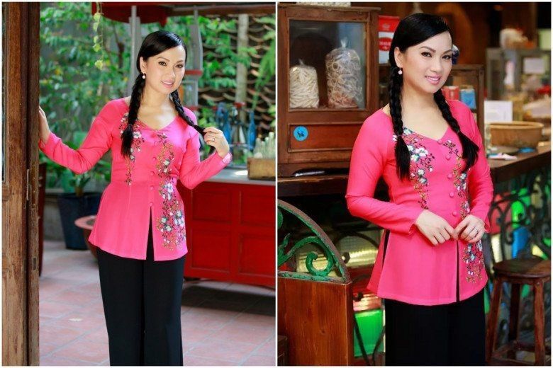 Vài lần về nước, Hà Phương còn "gây sốt" với hình ảnh mặc áo bà ba, quần đen phi bóng bình dân và thắt bím trông hệt thôn nữ.