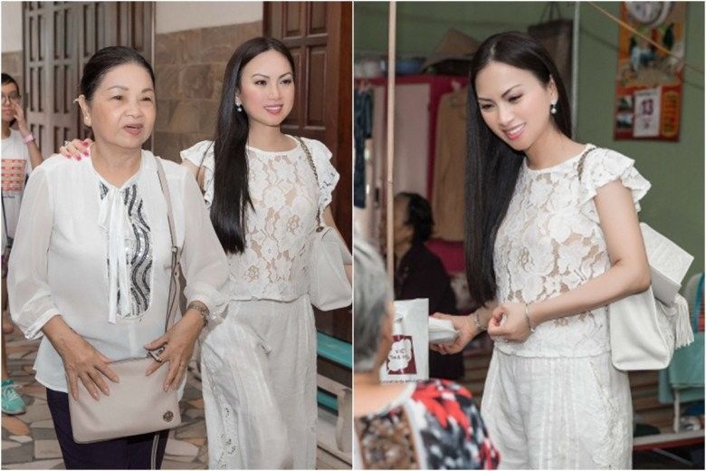 Đi từ thiện, em gái Cẩm Ly gây ấn tượng với set trang phục trắng phối ren thanh lịch và trang nhã. Kết hợp cùng 1 chiếc túi kẹp nách sành điệu, Hà Phương được khen ngợi trẻ trung, tinh tế.