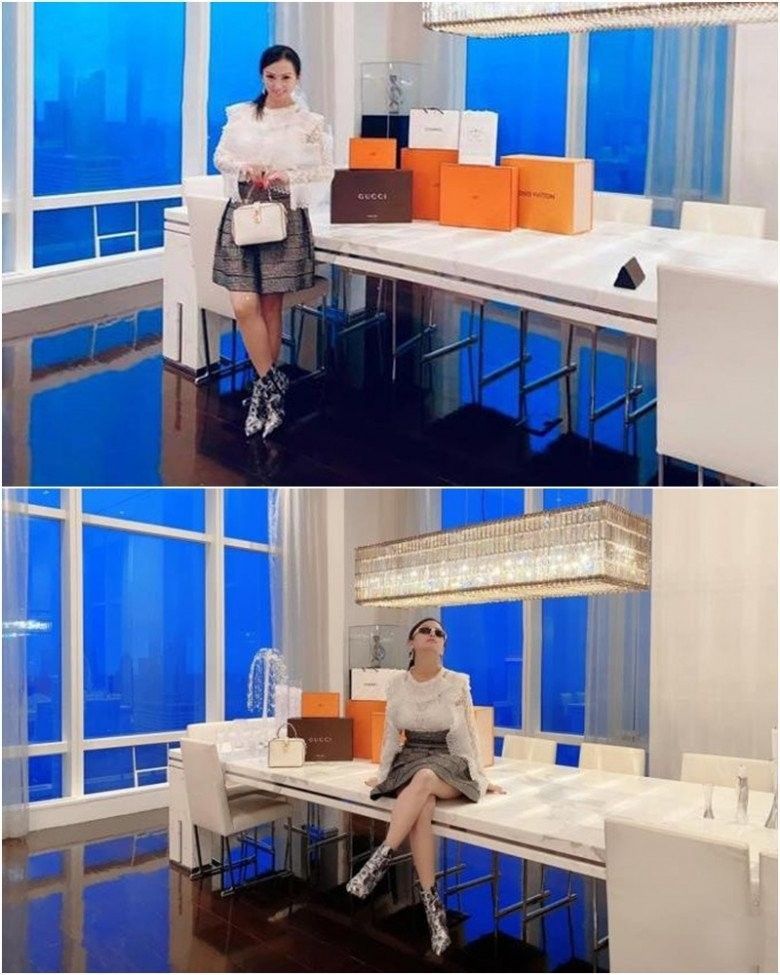 Lâu lâu thả dáng sương sương bên chiếc bàn ăn "siêu to khổng lồ", nhưng những gì dân tình "dán mắt" vào bức ảnh này của cô lại là loạt hộp đựng đồ hiệu đến từ các "ông trùm làng mốt" đình đám.