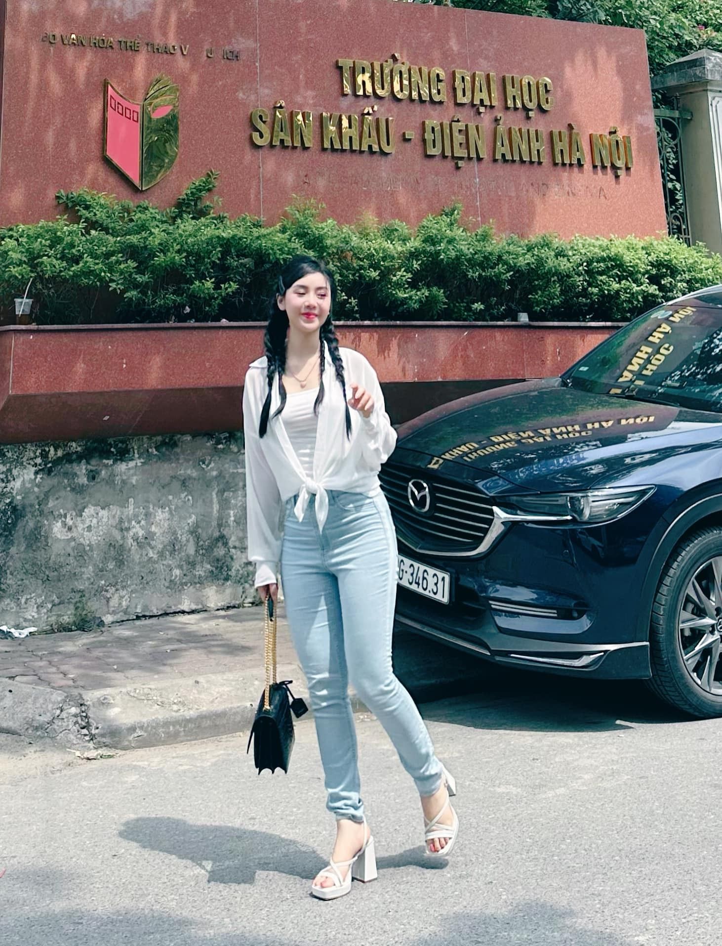 Set đồ tôn lên làn da trắng như bông bưởi là thương hiệu và cả cặp đùi giọt mật quyến rũ của nữ diễn viên sinh năm 1995.
