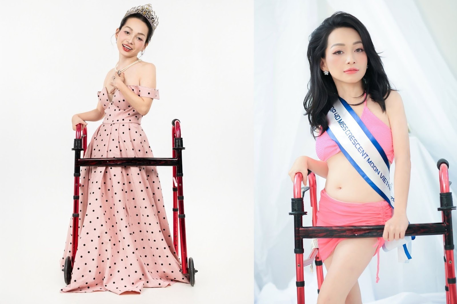 Bắt đầu từ 2020, mình đã tự mày mò học và cũng quen biết một số bạn làm cộng sự cho các cuộc thi hoa hậu. Ngoài ra, mình theo dõi tất cả các bạn hoa, á hậu nổi tiếng để biết trước khi đi thi họ sẽ làm gì, yếu tố gì để họ được chọn, sau khi đăng quang họ sẽ làm gì… Mình cũng hay nghe postcard của trang Eva.vn để học hỏi các hoa, á hậu và cũng ước nếu được đăng quang, mình sẽ được mời lên chia sẻ”, chị Trà My chia về động lực đến với sân chơi sắc đẹp dành cho người khuyết tật.