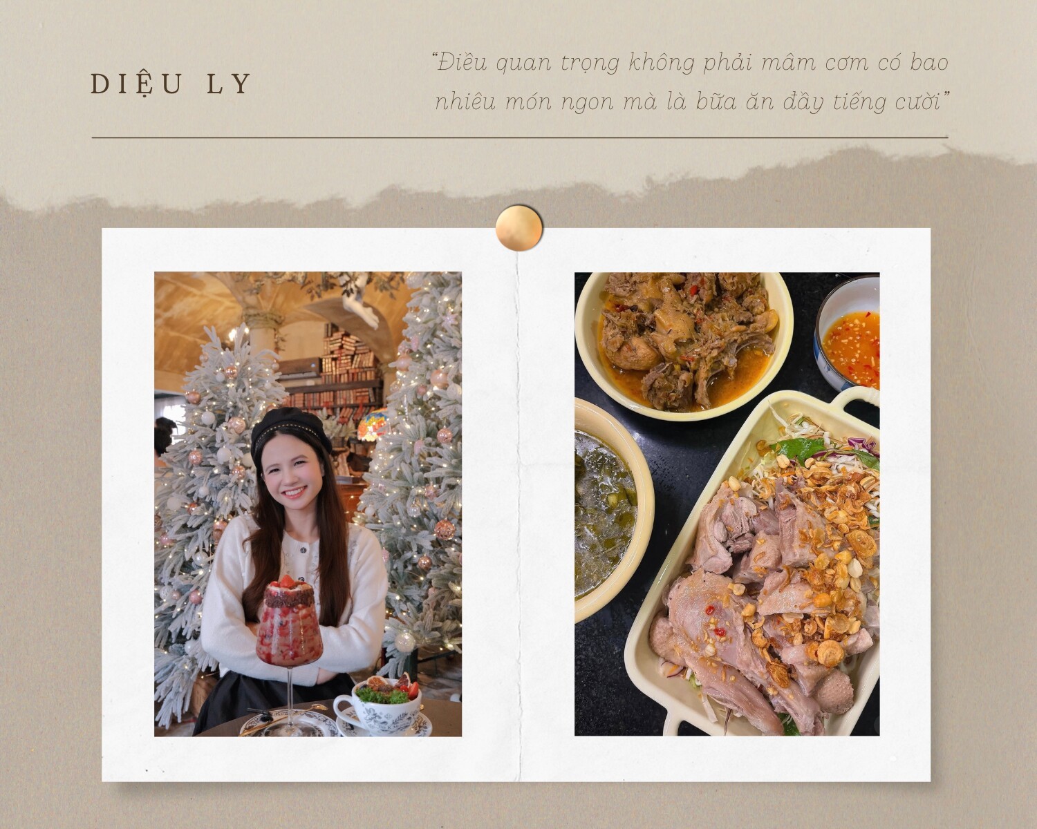 Với Ly, những mâm cơm ấm áp không chỉ để thưởng thức món ăn, mà còn là dịp gắn kết và sẻ chia. Dù nhịp sống bận rộn khiến việc ăn cơm nhà trở nên thưa thớt, cô tin chỉ cần dành một chút thời gian sắp xếp, bữa cơm vẫn trọn vẹn ý nghĩa. Một món canh, một món mặn, thậm chí đồ ăn mua sẵn thôi cũng đủ, miễn là cả nhà ngồi lại bên nhau, cùng cười, cùng trò chuyện. Theo Ly, điều quan trọng không phải mâm cơm có bao nhiêu món ngon, mà là bữa ăn đầy tiếng cười. Vì vậy, cô nhấn mạnh không nên quá áp lực với việc nấu nướng; chỉ cần có lòng, mọi thứ sẽ trở nên nhẹ nhàng và ý nghĩa.