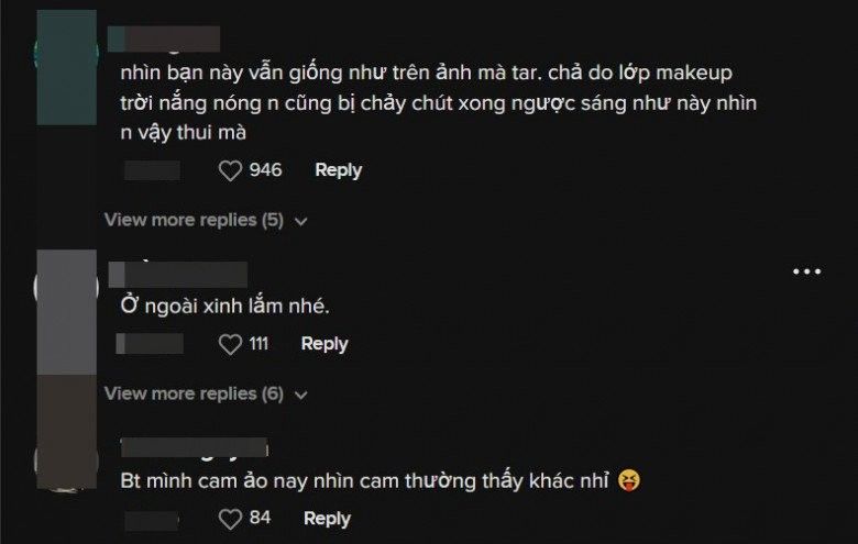 Bên dưới bài đăng, công chúng cho rằng, cô nàng bị make-up dìm tơi tả. Cô nàng ở ngoài không trang điểm trông trắng xinh và đẹp dịu dàng.