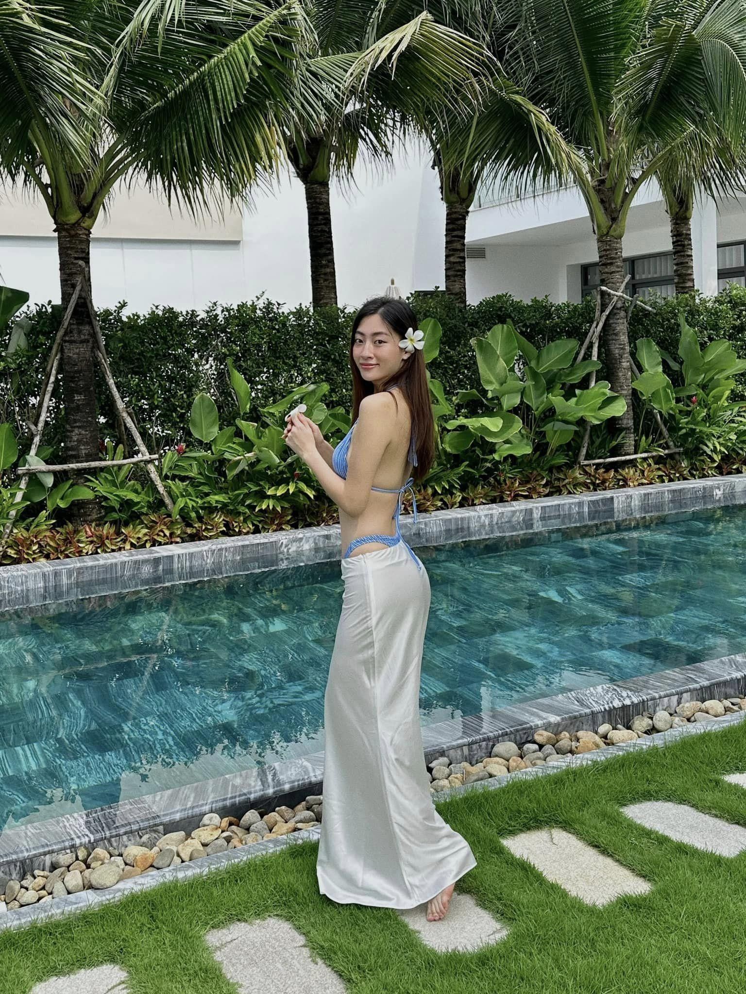 Trong khi tiết trời vẫn còn khá oi ả giữa cái nắng những ngày hè cuối tháng 6, người người nhà nhà tưng bừng khoe dáng với các thiết kế áo tắm cọng thun, áo tắm khoét hông cao chót vót thì Lương Linh lại là 1 điểm nhấn cực tinh tế. Cô diện 1 combo áo tắm 2 mảnh vô cùng gợi cảm nhưng đã cân bằng khoảng hở táo bạo nhất với phần chân váy dài bằng lụa chấm chân.