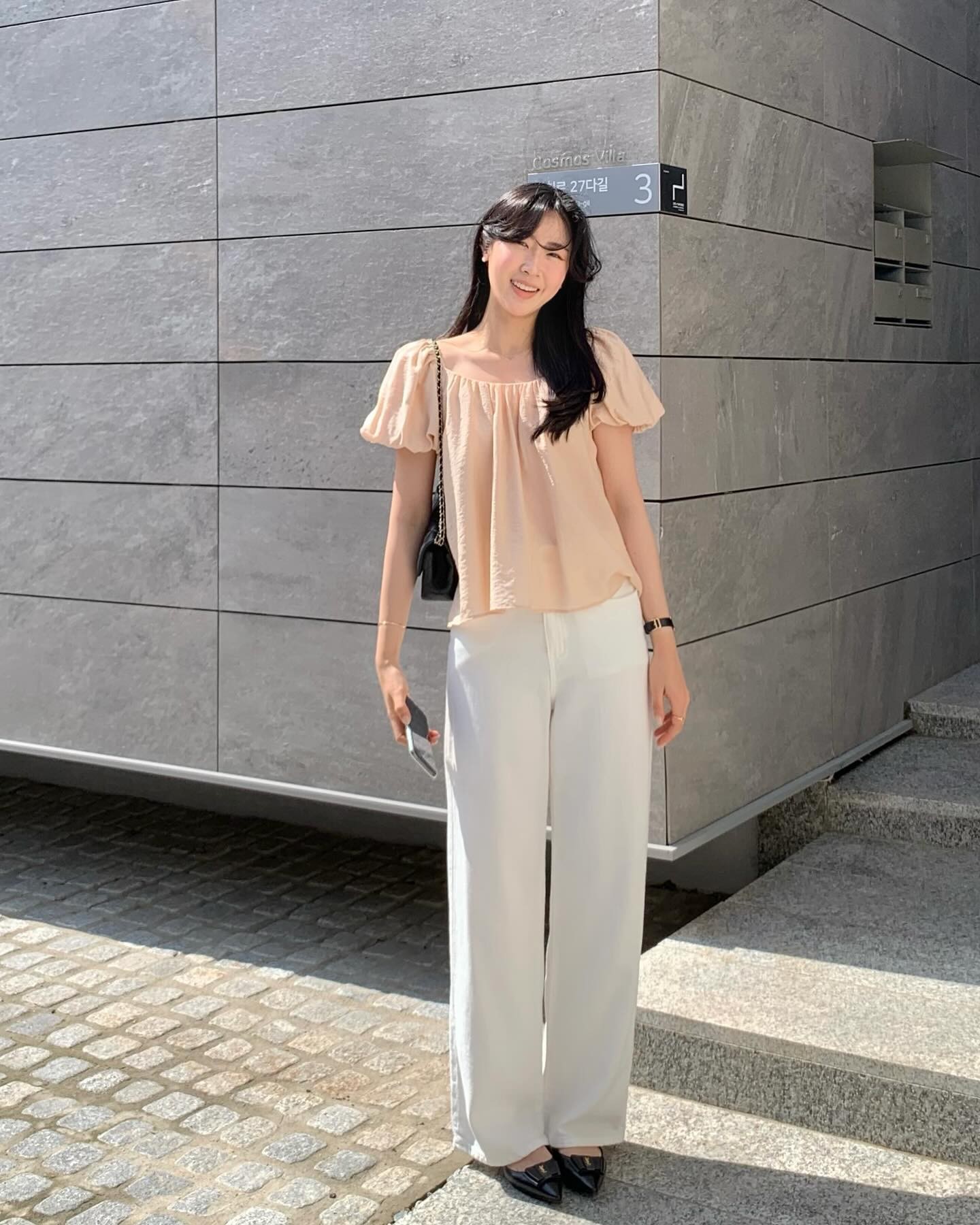 Nếu muốn outfit trở nên tươi sáng và nổi bật hơn, quần ống rộng màu trắng là lựa chọn rất đáng cân nhắc. Màu trắng mang lại cảm giác nhẹ nhàng, tinh tế và rất phù hợp với mùa hè.