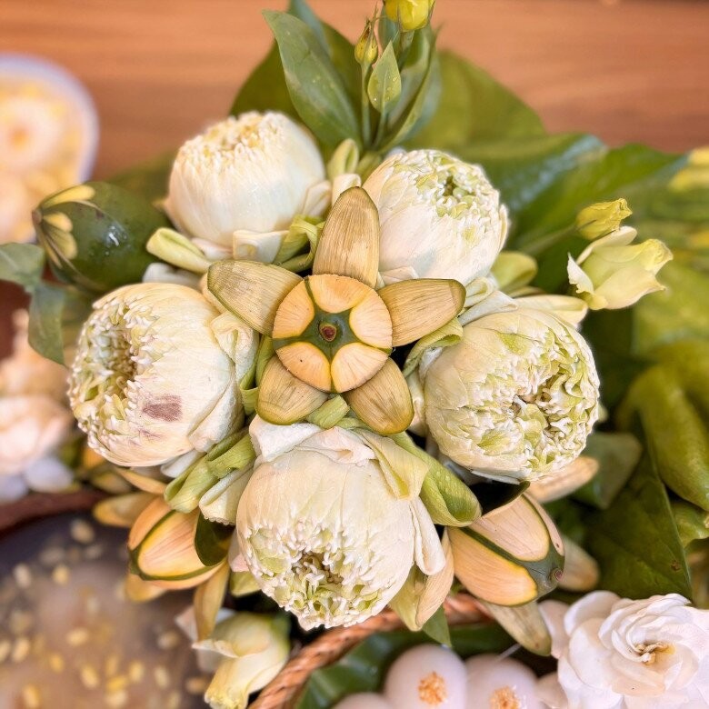 Những loại hoa phù hợp có thể kể đến như hoa cúc vàng, hoa hồng, hoa bưởi, hoa sen hoặc hoa ly. Nên ưu tiên hoa tươi, tránh dùng hoa giả. Số lượng hoa trong bình cũng nên là số lẻ, thường từ 3 đến 5 bông.