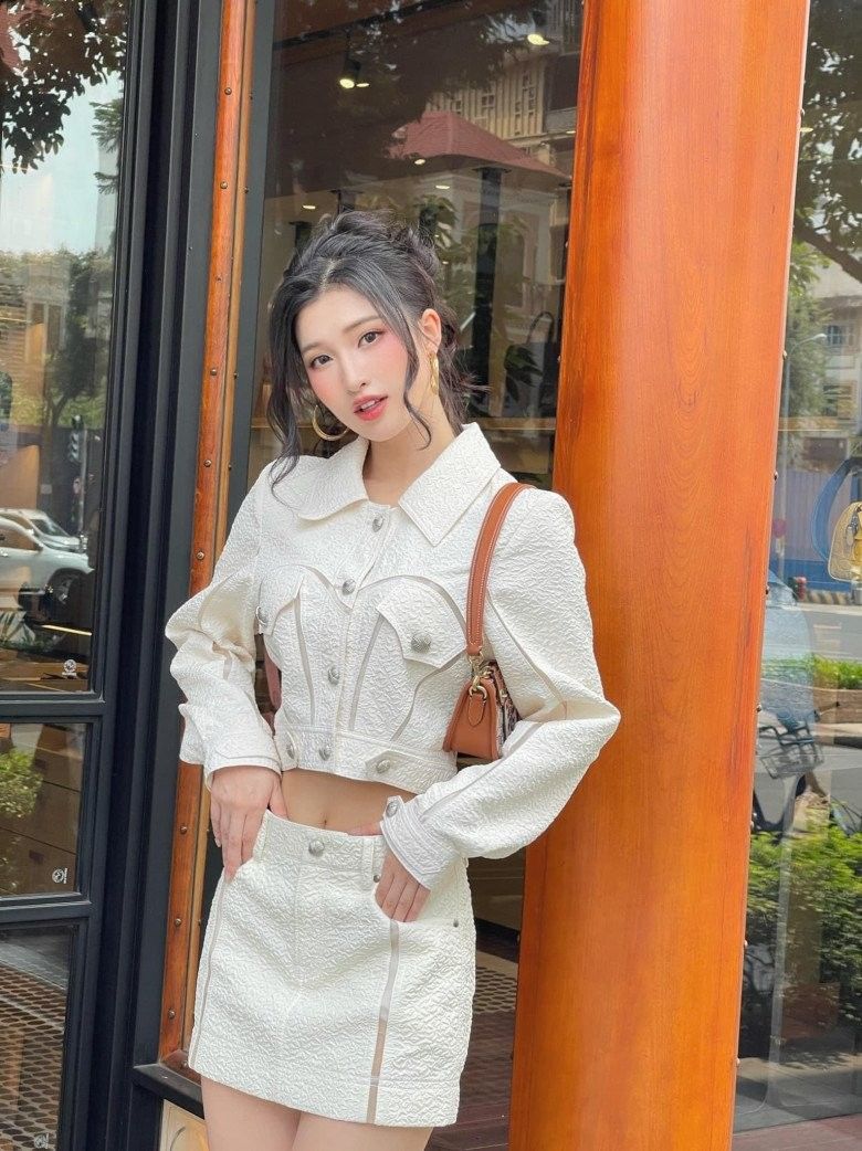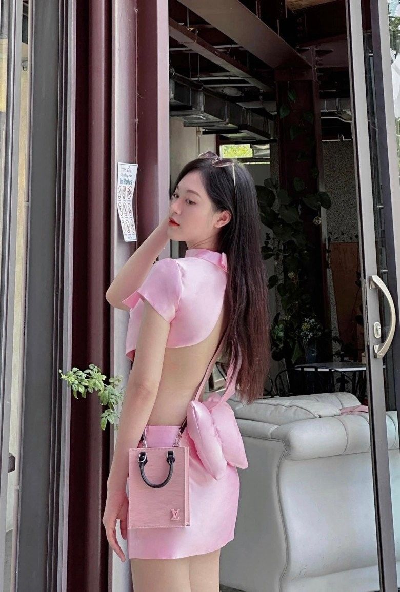 Thuỳ Linh đồng nhất giữa trang phục và phụ kiện đi kèm. Cô nàng thậm chí còn "nhỉnh" hơn người chị ở khoản đầu tư cho mình chiếc túi hiệu đắt xắt ra miếng.