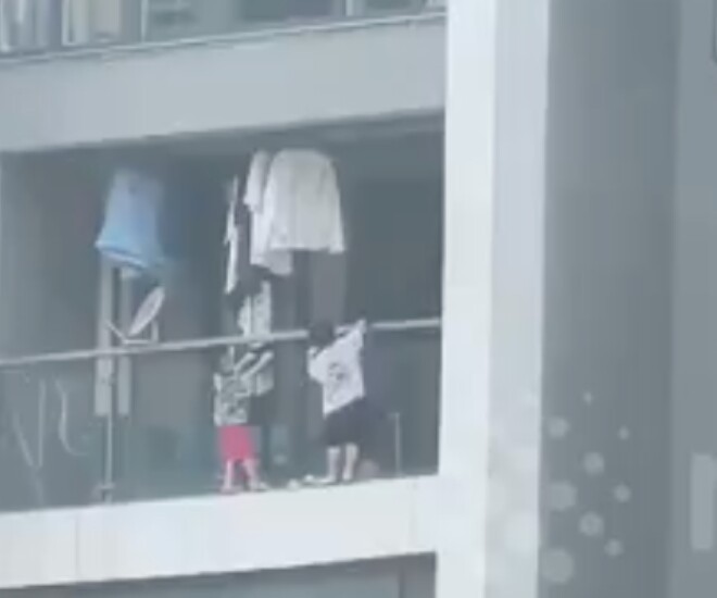 Vào ngày 7/8, mạng xã hội lan truyền đoạn video hai bé trai trèo ra ngoài ban công tầng 13 của một chung cư. Được biết, trong lúc không có người lớn ở nhà, các bé đã liều lĩnh thực hiện những động tác giống như hít xà, khiến người dân xung quanh không khỏi hoảng sợ. Một bé trai thậm chí còn treo lơ lửng, chỉ bám vào kính ban công, tạo nên cảnh tượng vô cùng nguy hiểm.